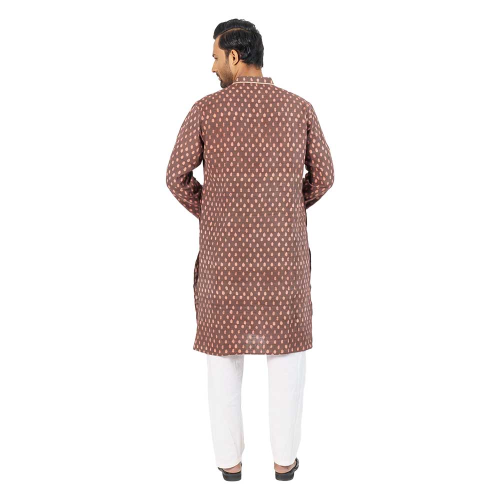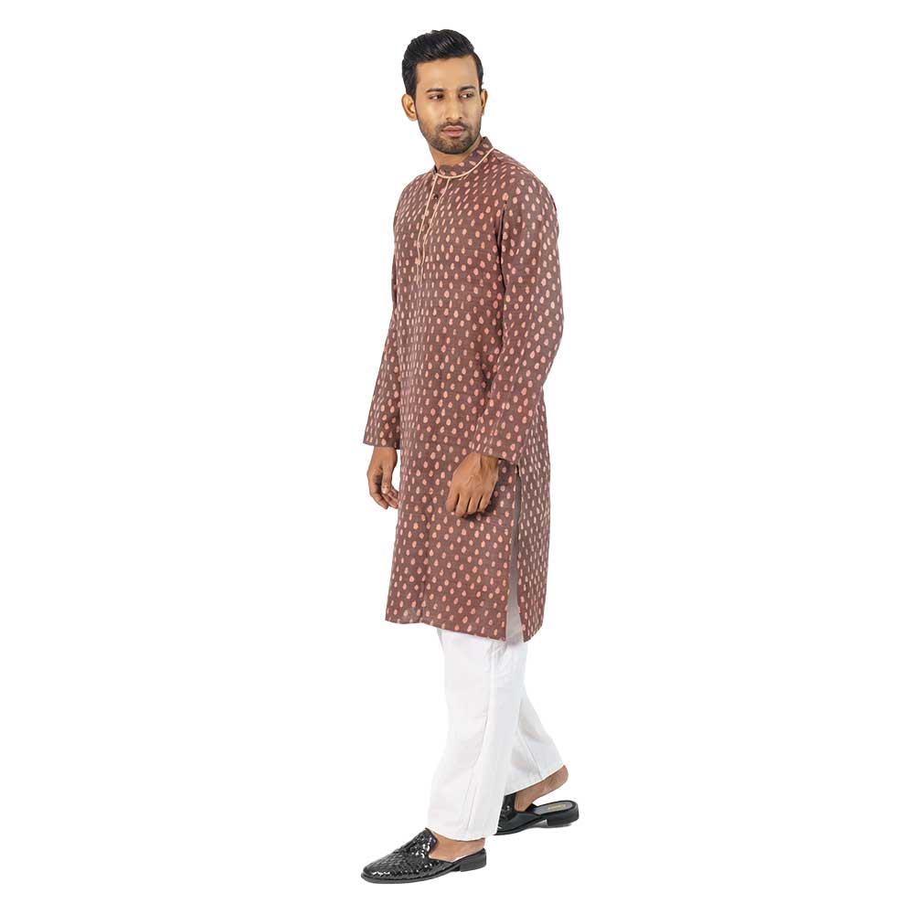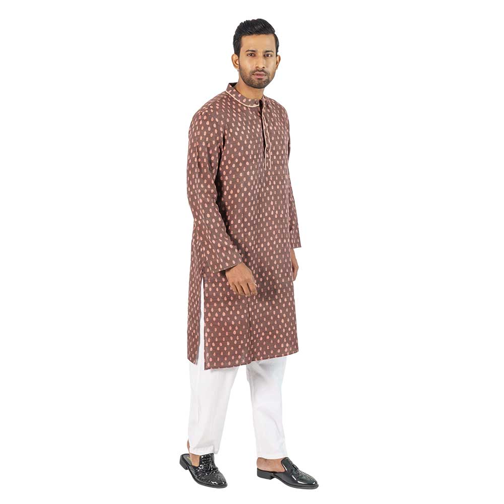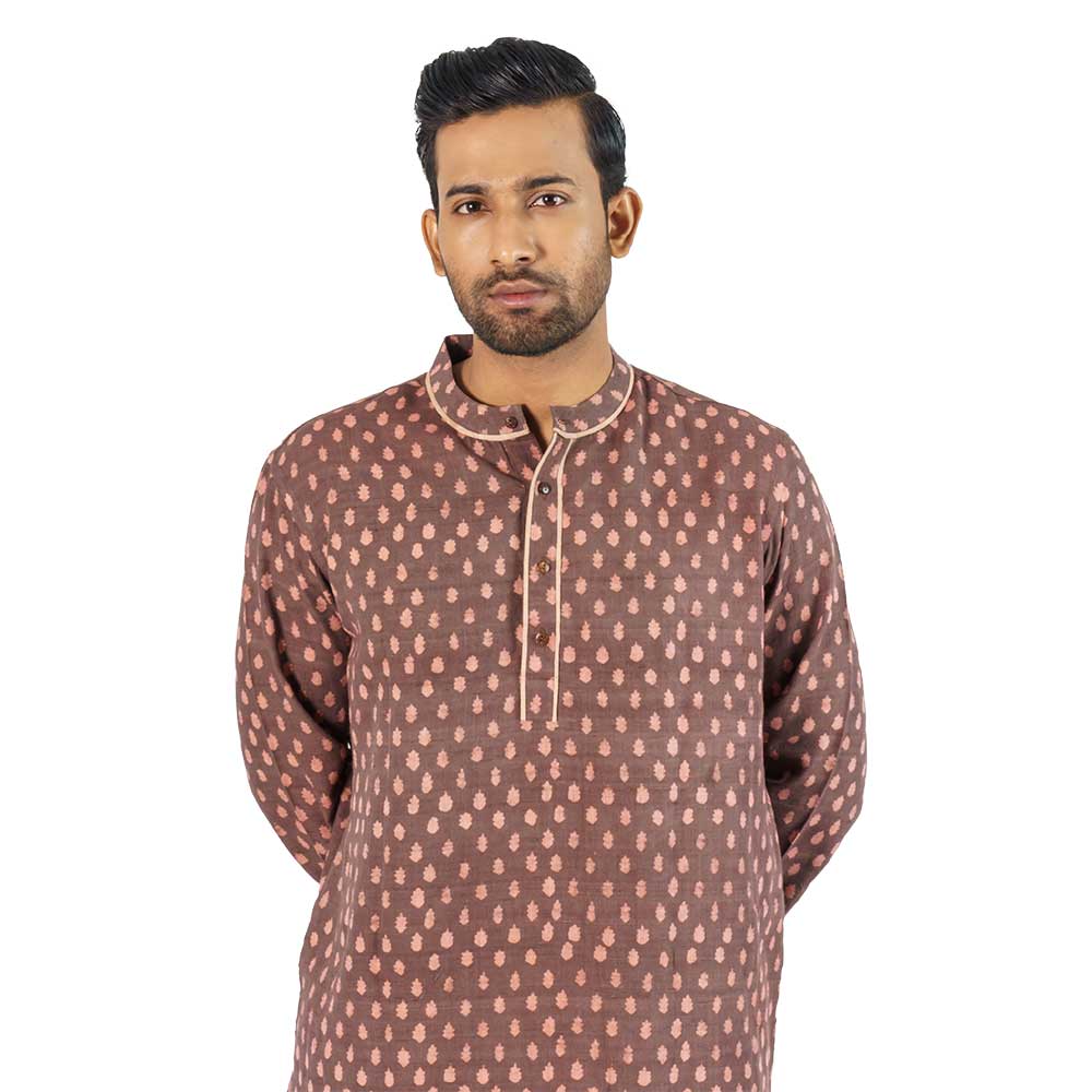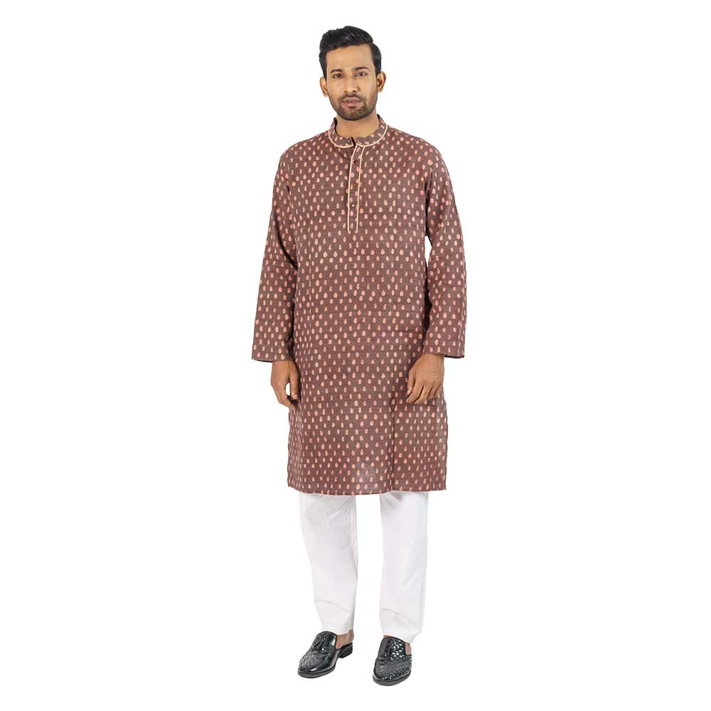 This elegant cotton panjabi may be the perfect fit for any traditional occasion. Designs of white and brown are bound to make heads turn.