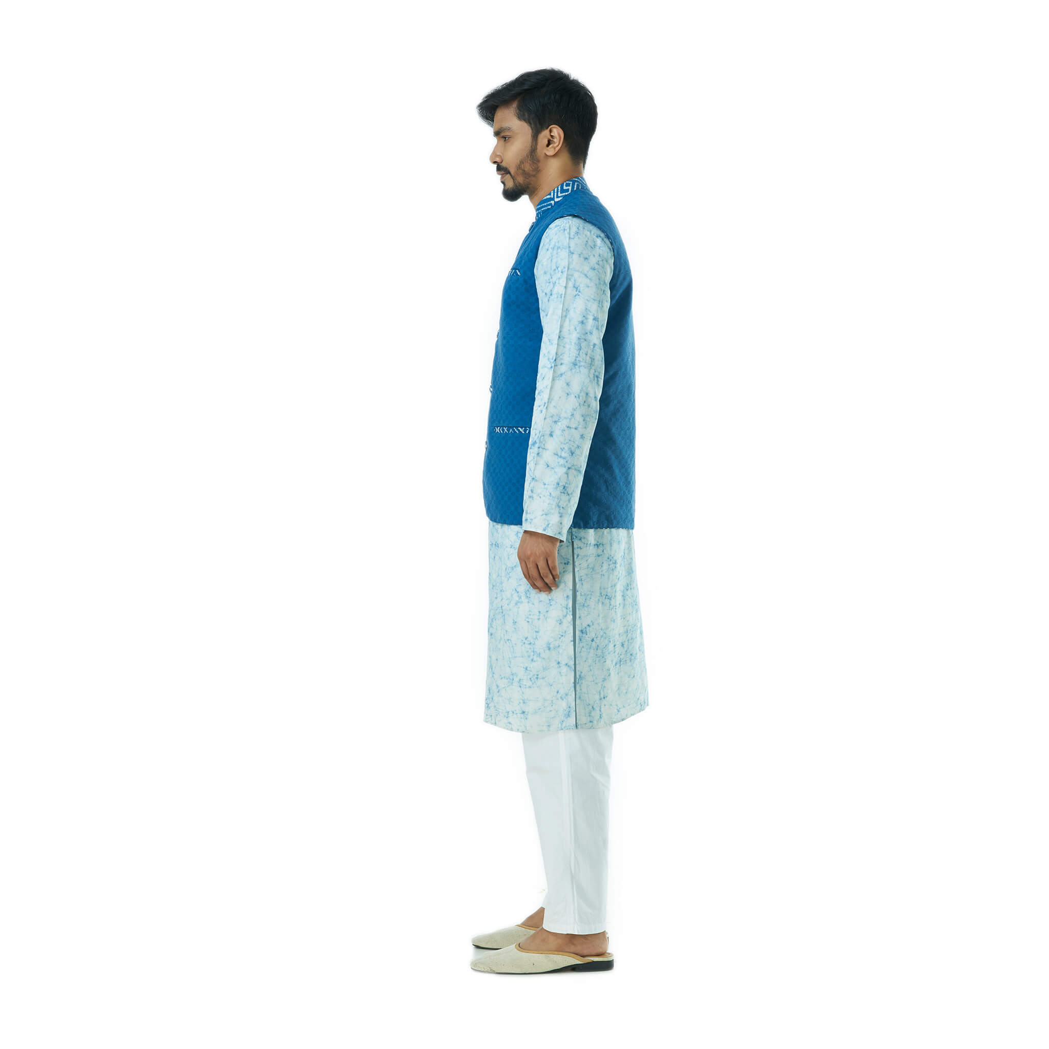 Wax printed Pure Cotton Vest, that has been dyed with Indigo. Here we found the wonderful aesthetic representation of Blue colour.