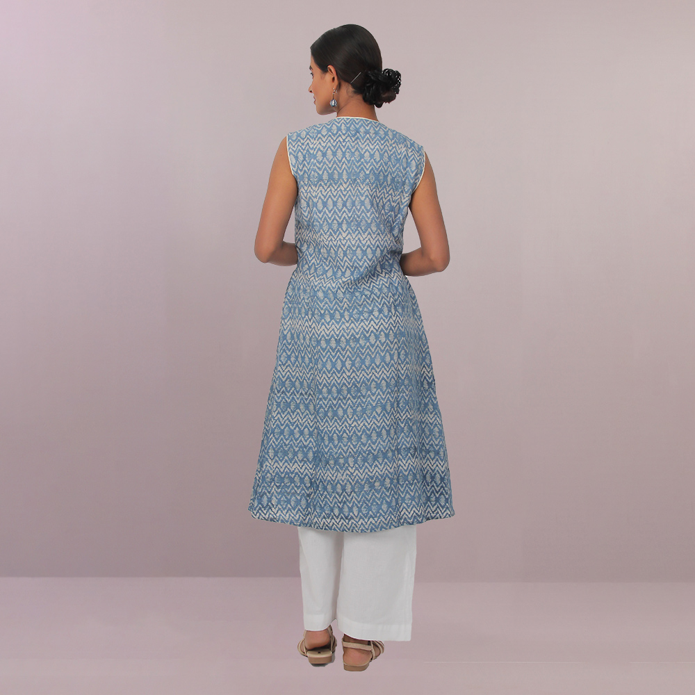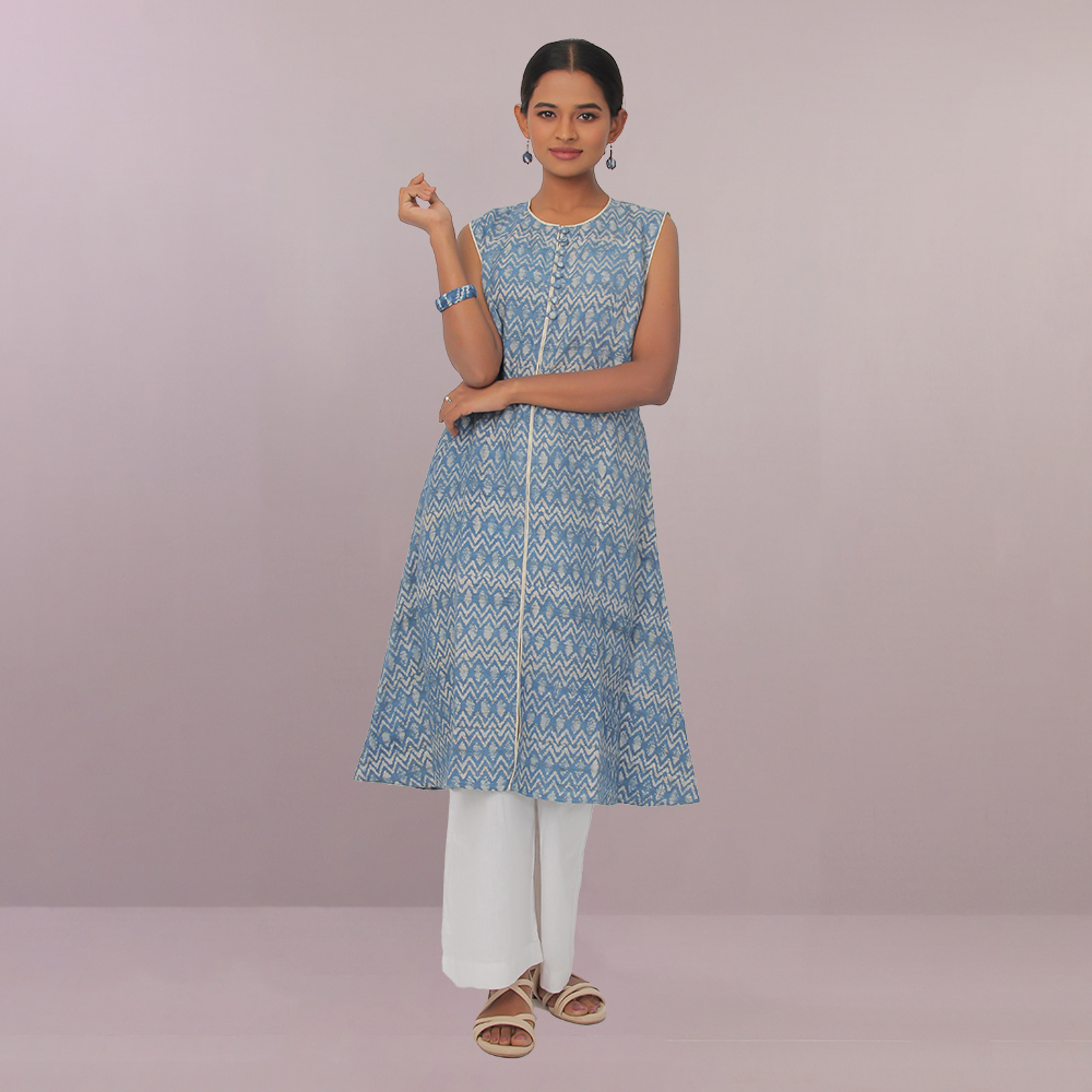 The preparation of indigo and the dyeing of cloths are other flourishing in this stunning kurti. All Aranya products are handmade,