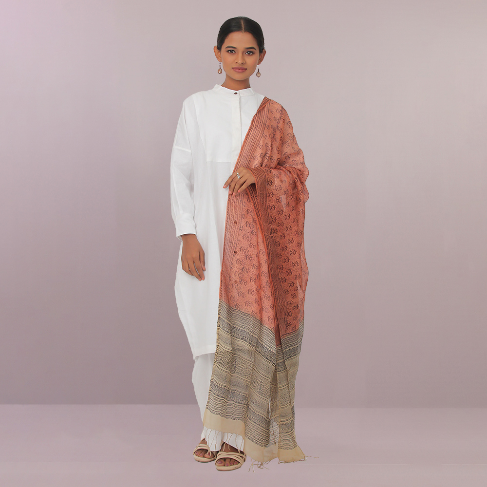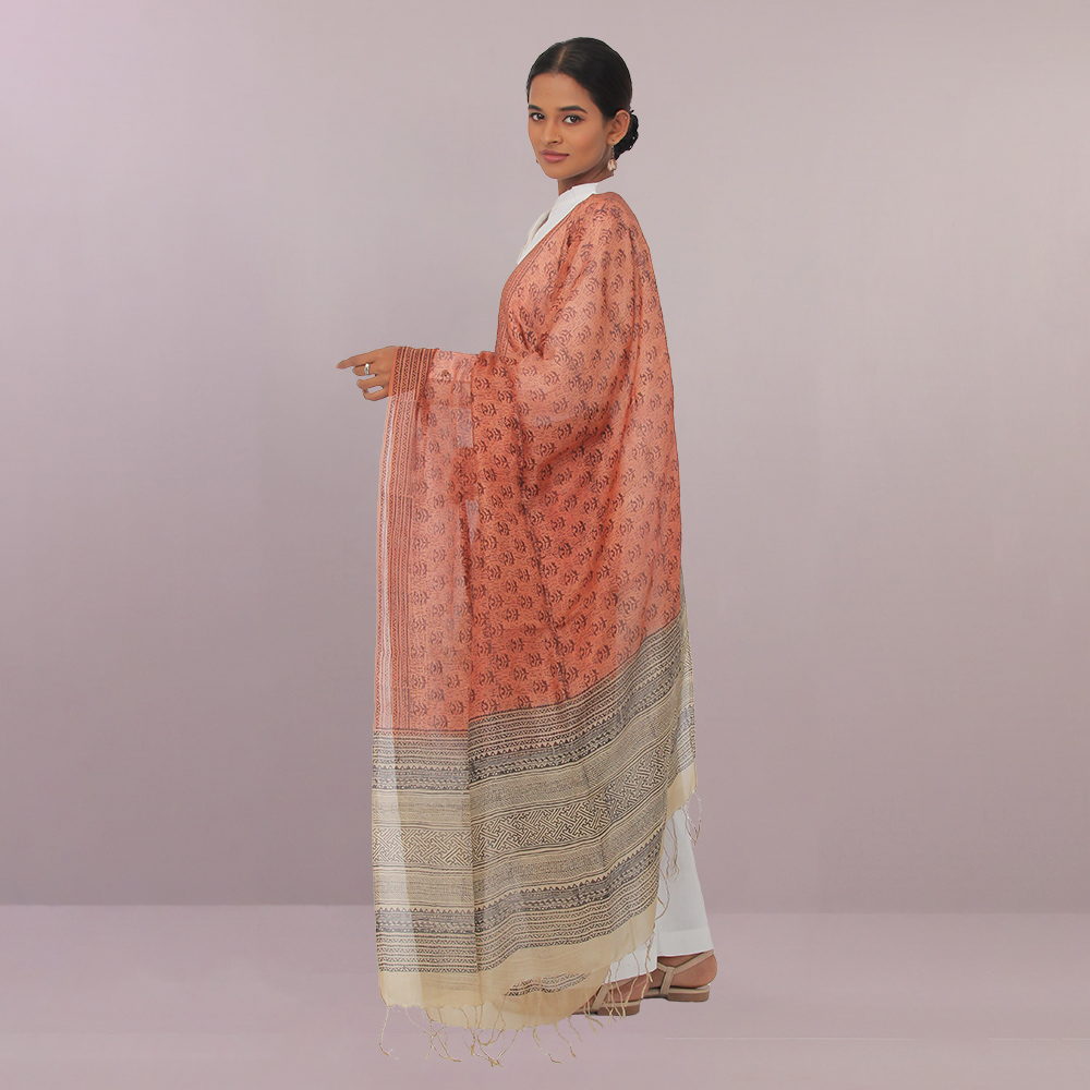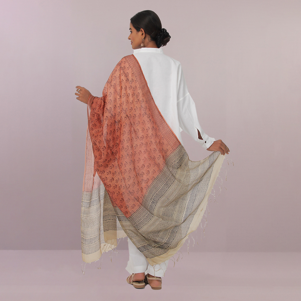 This red & black printed muslin orna is made from a luxurious material with smooth texture. All Aranya products are handmade, using natural materials, within a fair trade framework.