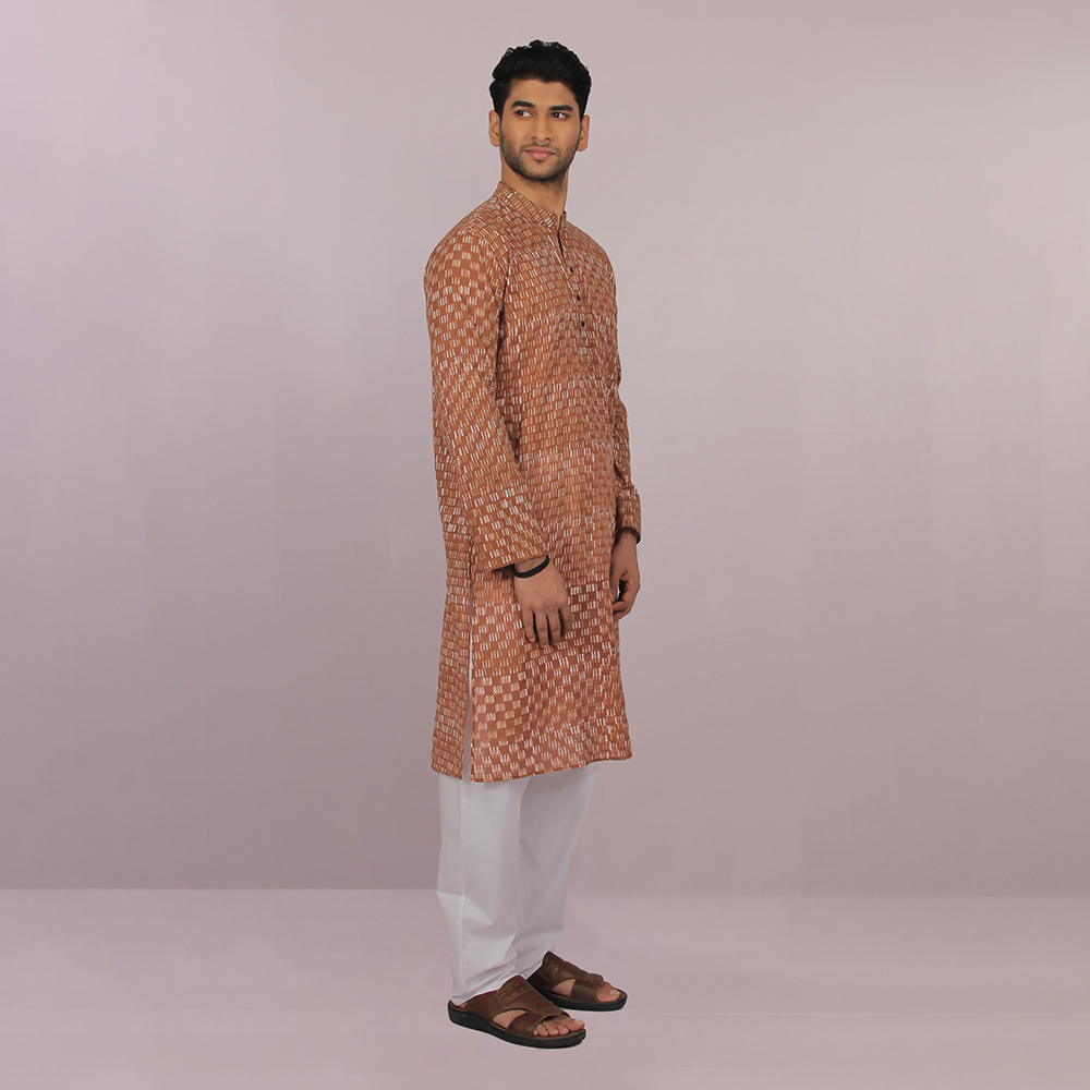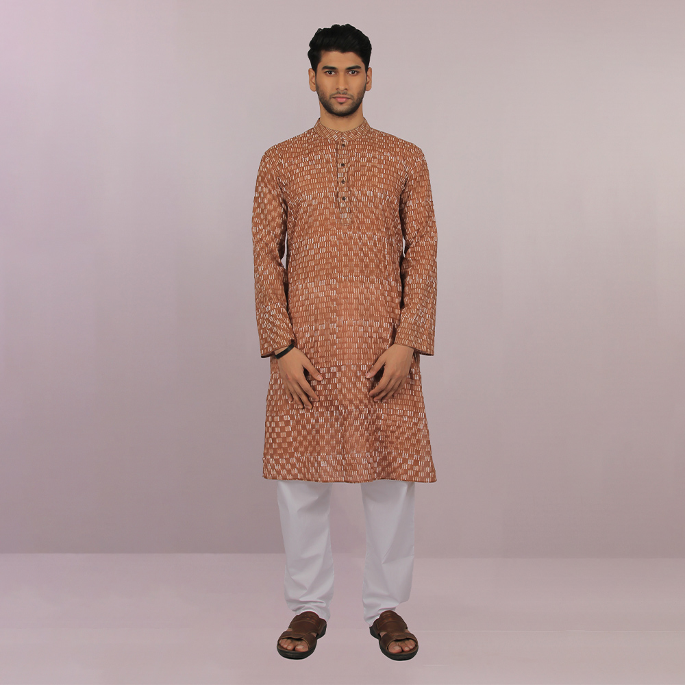 This brown panjabi is suitable for any traditional occasion of your choice. Gentle cotton fabric makes it available to wear all year round!