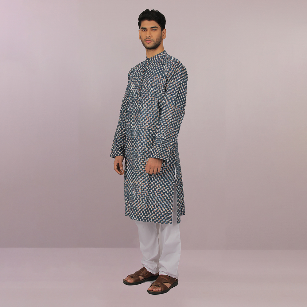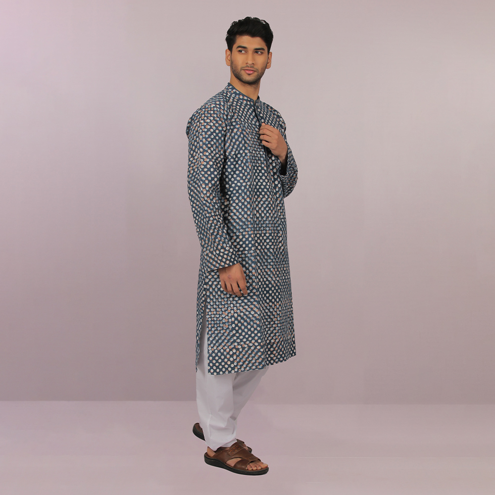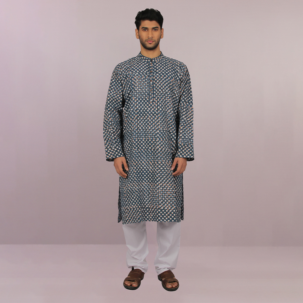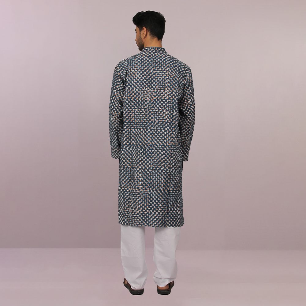 This Wax Printed cotton panjabi is perfect to carry in any occation. Polka dots are the perfect accessory for no reason,the Color of this Panjabi dyed from natural fibres and materials within a fair trade framework.