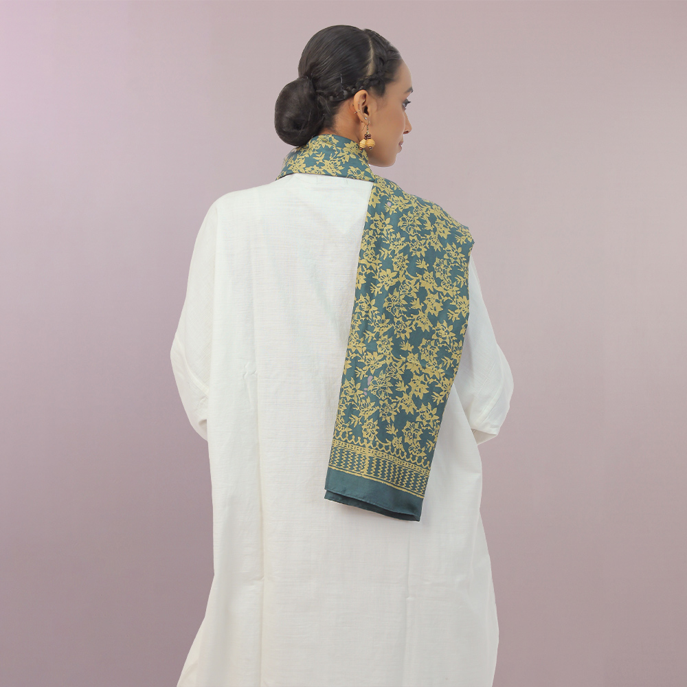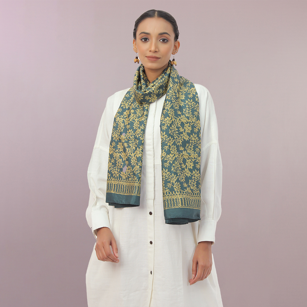 scarf is a composition of Indigo and Myrabalan natural dye which illustrate