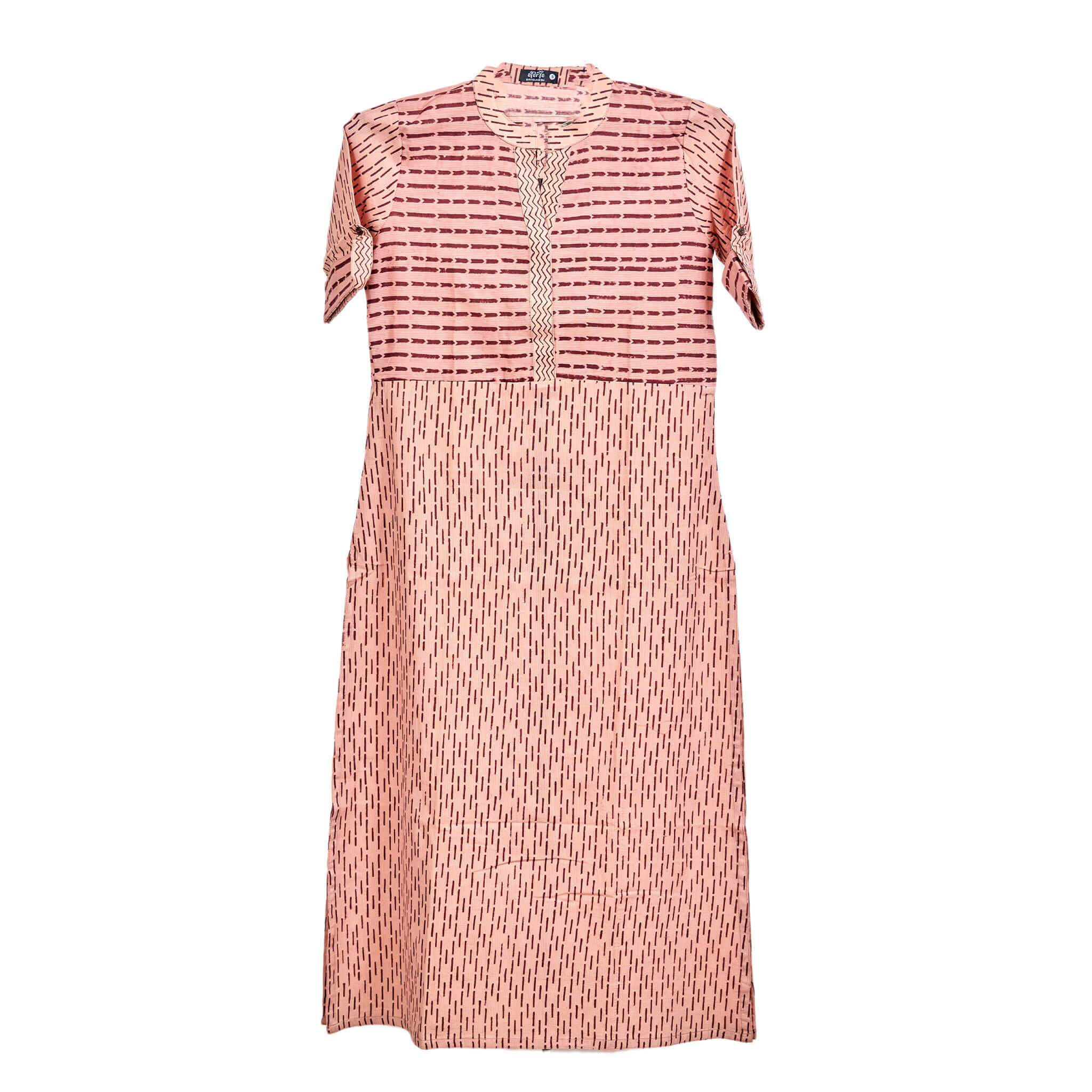 The energetic color red comes from the natural color madder in this cotton kurti. Block print has been used to make this madder more aggressively beautiful. All Aranya products are handmade, using natural fibers and materials within a fair-trade framework.