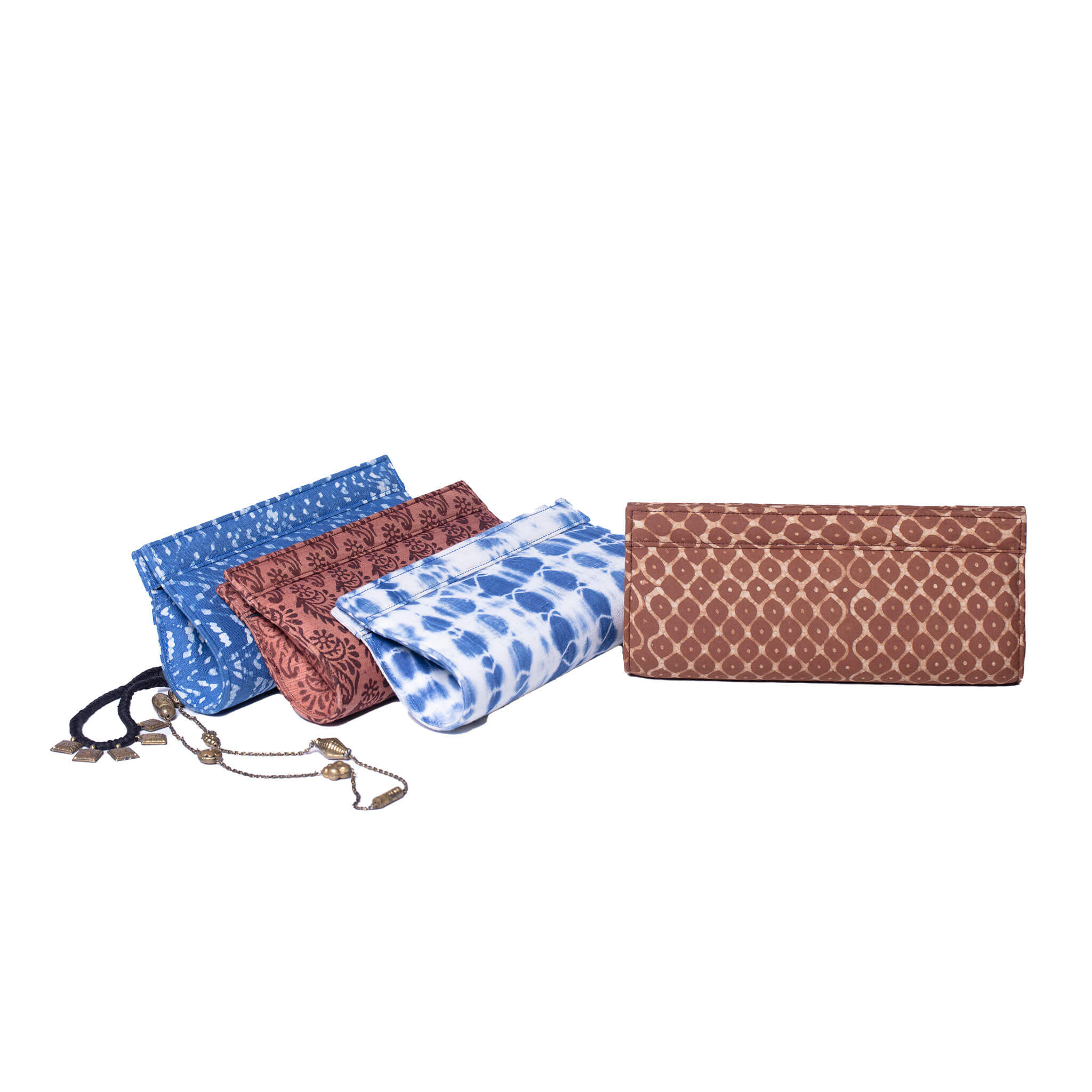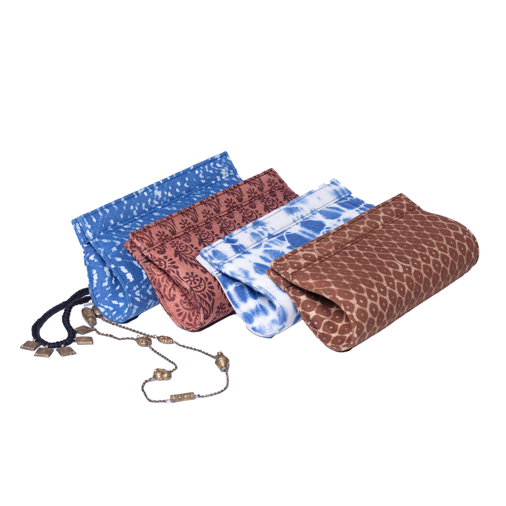 The beautiful multiple color in this ladies purse is taken from handpicked madder,indigo,catechu etc. Block print was used to produce the designs on cotton fabric to give you the best of beauty and comfort. All Aranya products are handmade, using natural materials, within a fair trade framework.