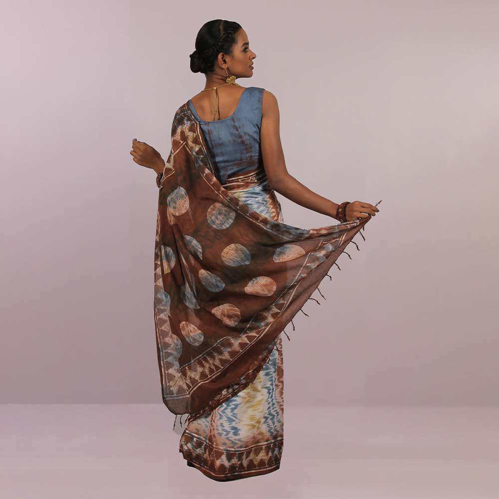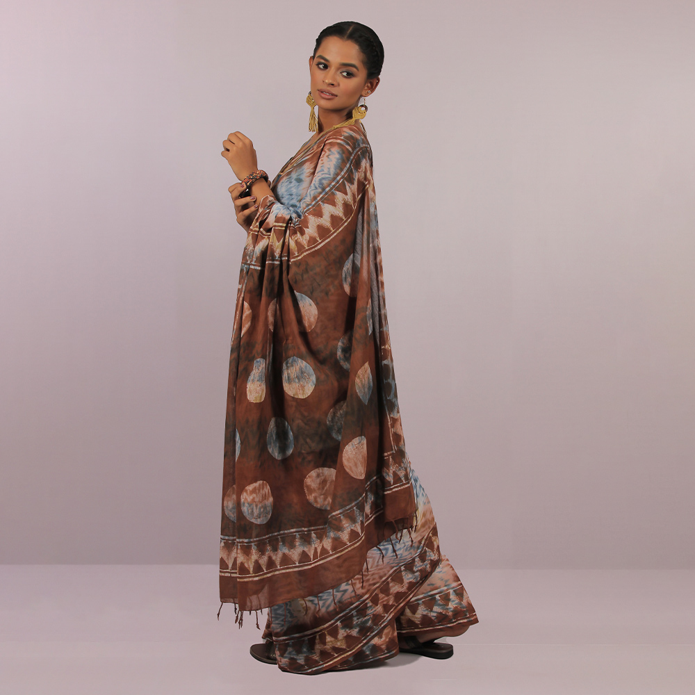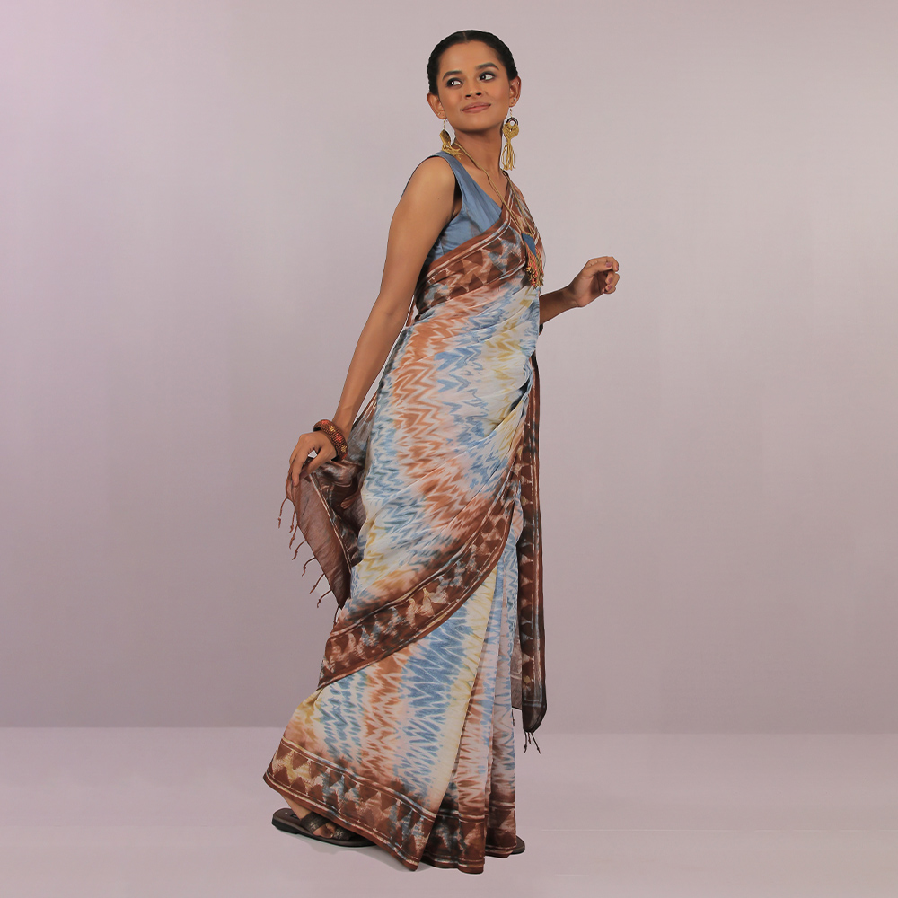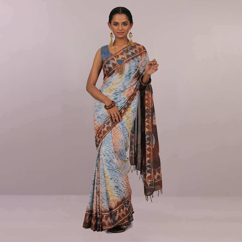 Multi color and zigzag wax print make this Cotton sharee more cultural look.All Aranya products are handmade, using natural fibers and materials within a fair-trade framework.