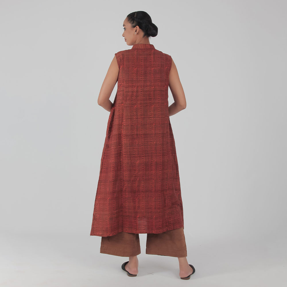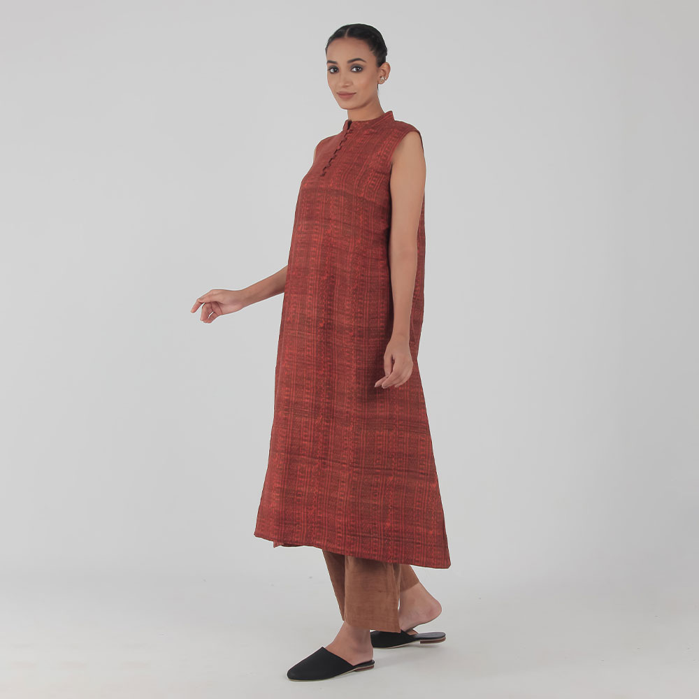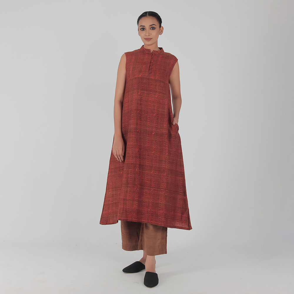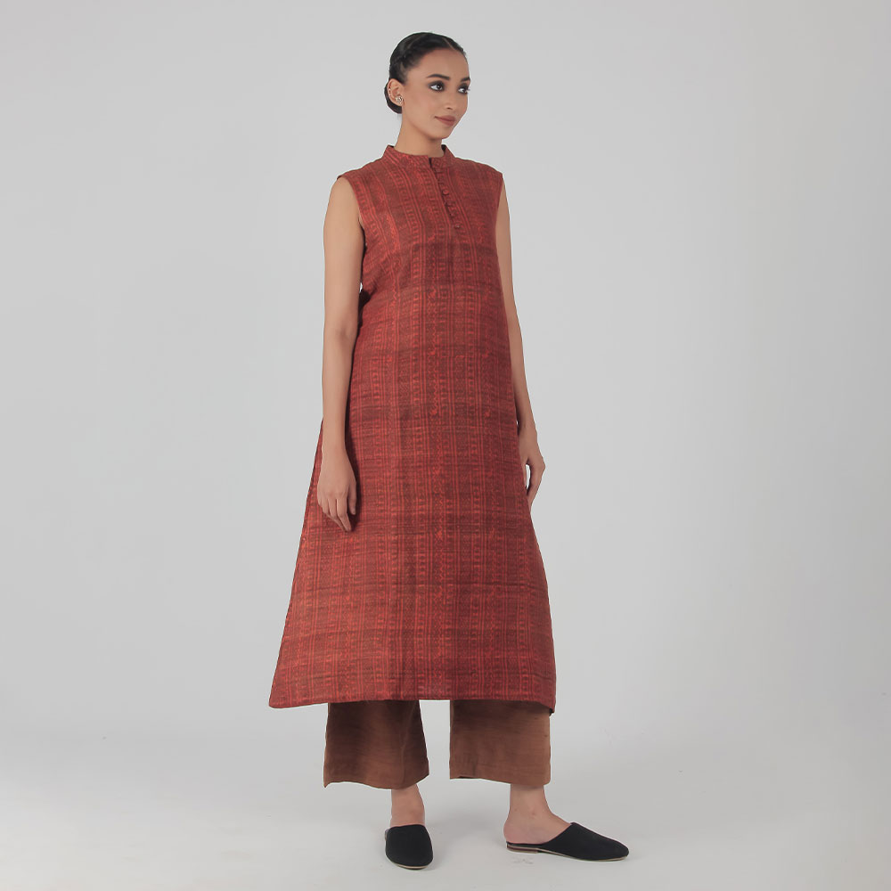 The carmine colors of this endi silk long kurti makes it a good wear for both indoor and outdoor places. endi silk fabric is used to provide most comfort.