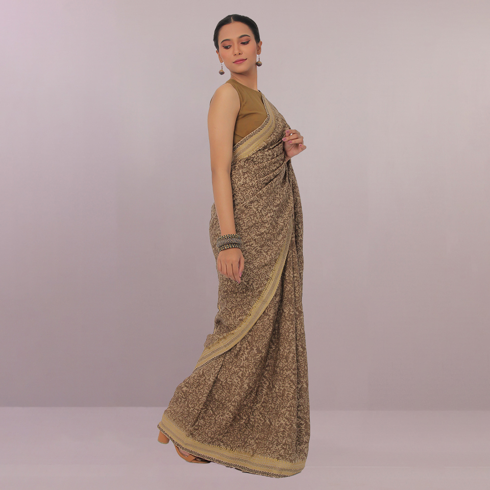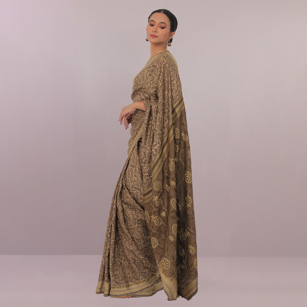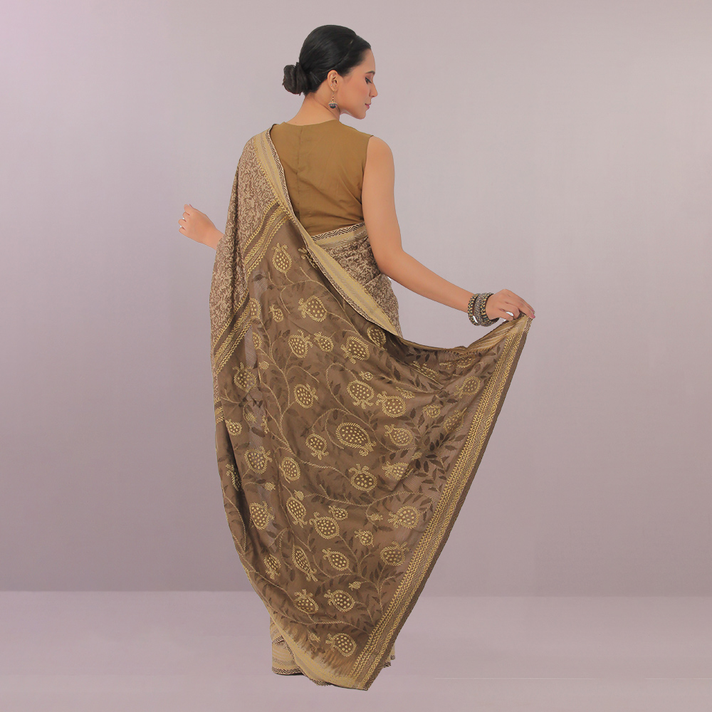 This amazing Kantha saree is presenting a fusion of natural colors, which is hand-stitched by using natural thread which gives it a Breathtaking look.