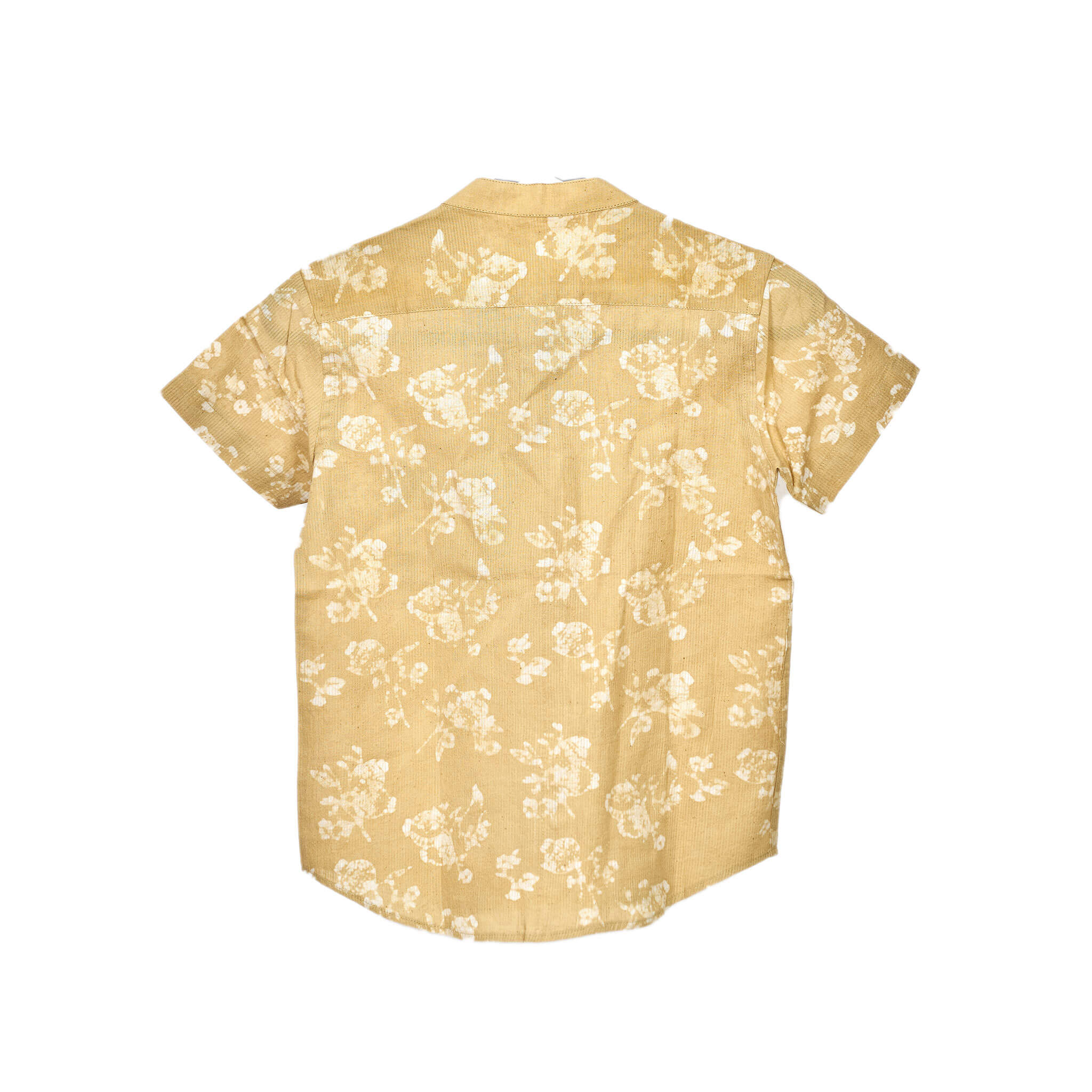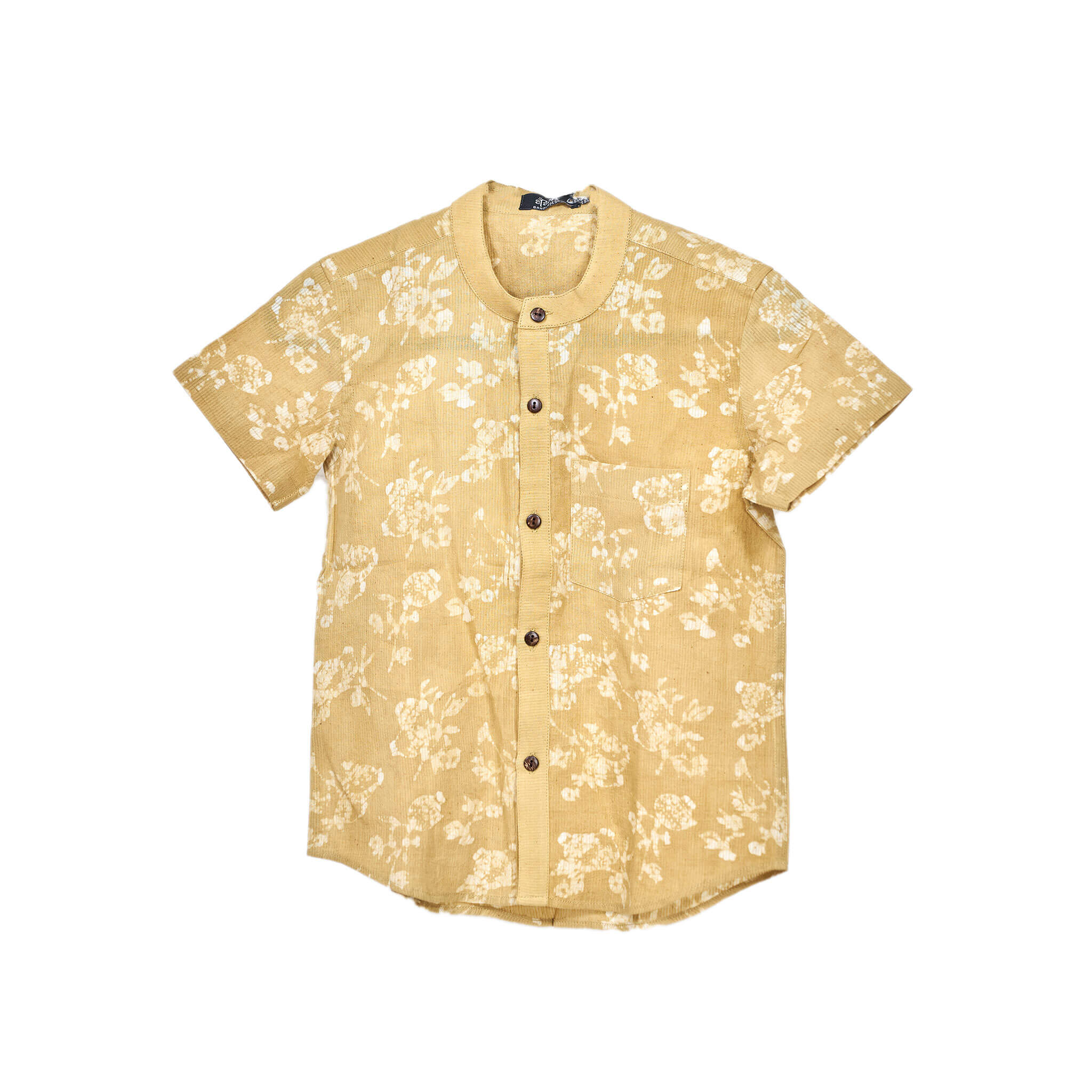 The segment of characteristic color myrobalan shows brilliant golden tone in this wax-printed cotton shirt. All Aranya products are handmade, using natural fibers and materials within a fair-trade framework.