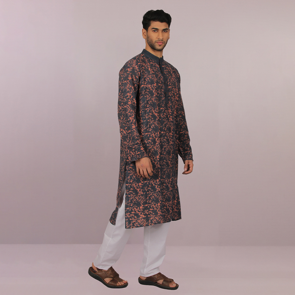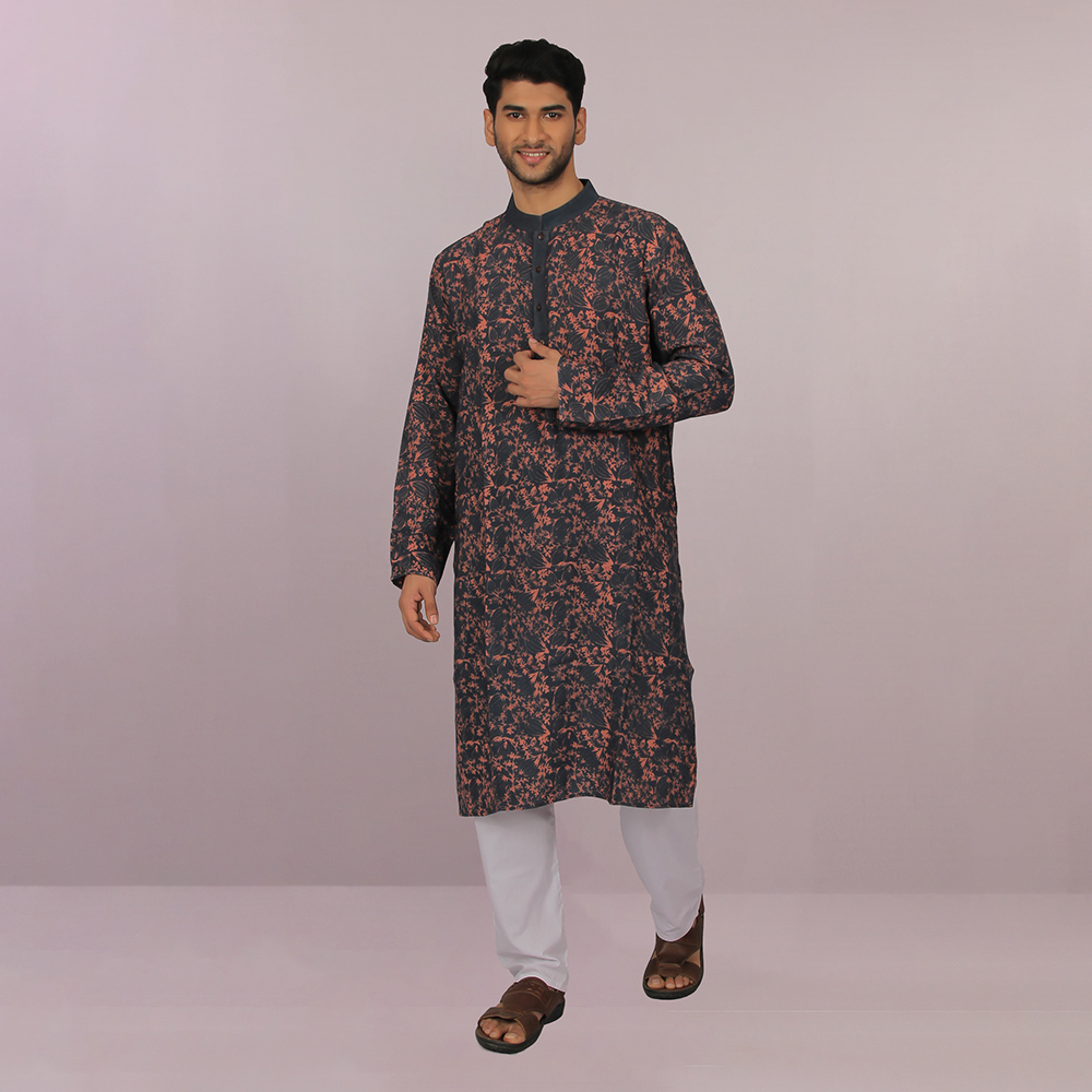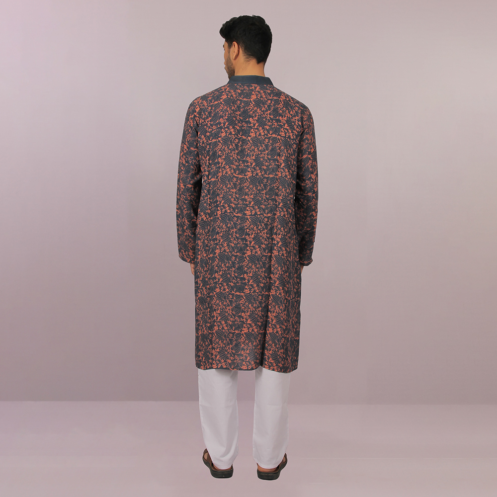 With the impulsive color of red and blue, this cotton panjabi comes from the essence of nature. Wax-resistant dye was used to enhance the appearance with exclusive designs.