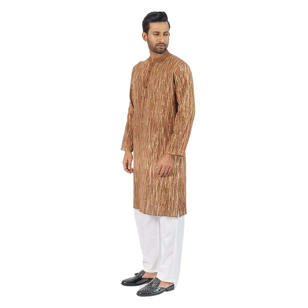 The minimalistic design and earthy tones of this panjabi are what make it different from the others. Linen fabric is used to provide the most comfort, so you can get the best of both worlds.
