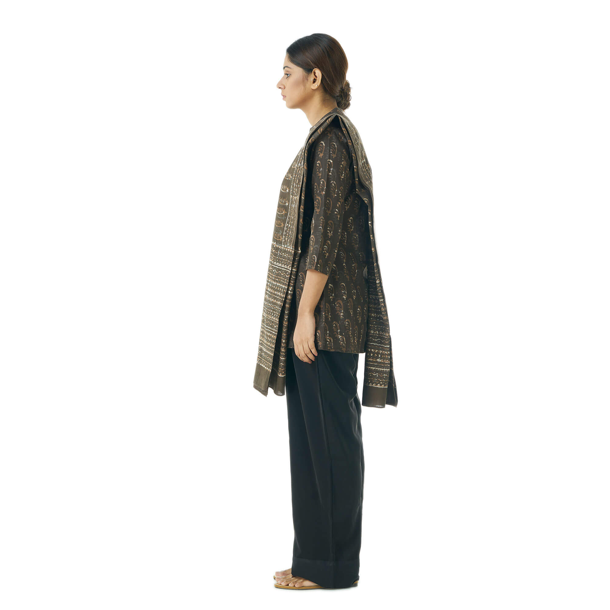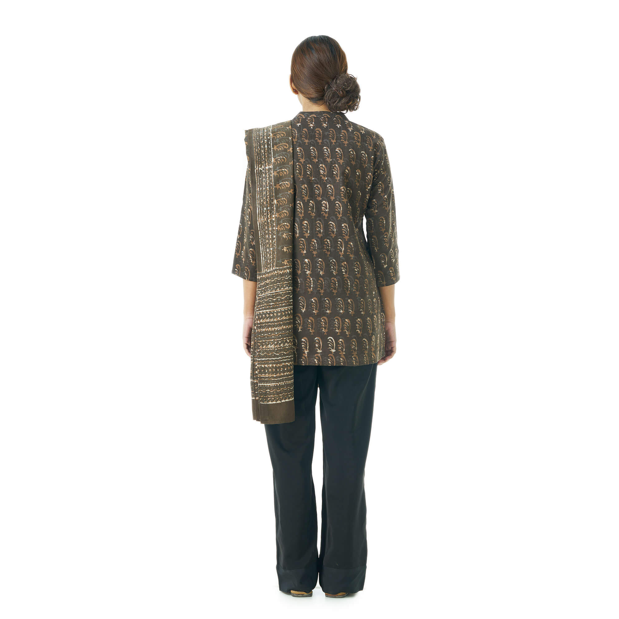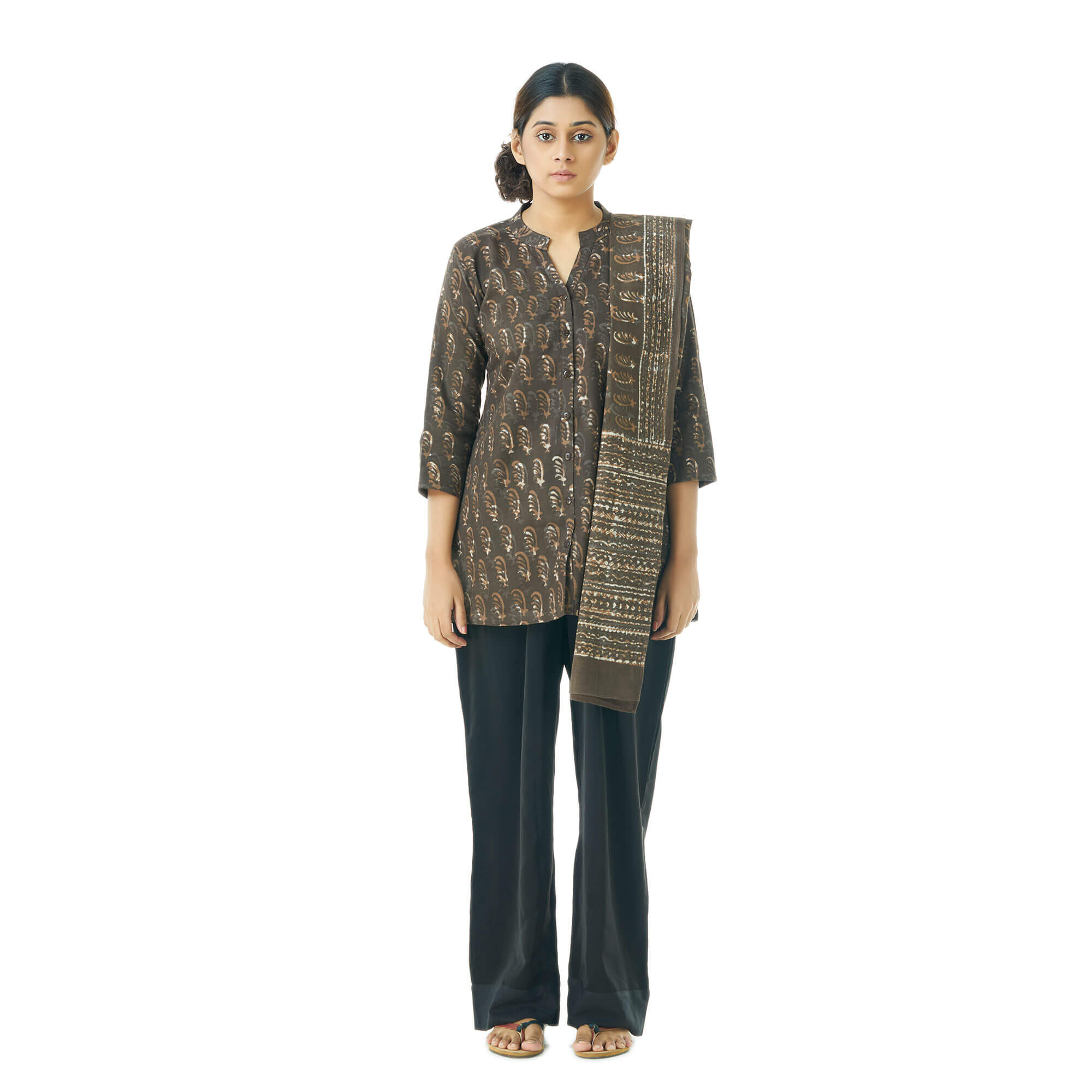 Pieces from nature, Catechu & Myrabalan were used to bring out the textures Brown & Gray, while wax print gave this Cotton Shirt & Scarf another layer of rich detail.
