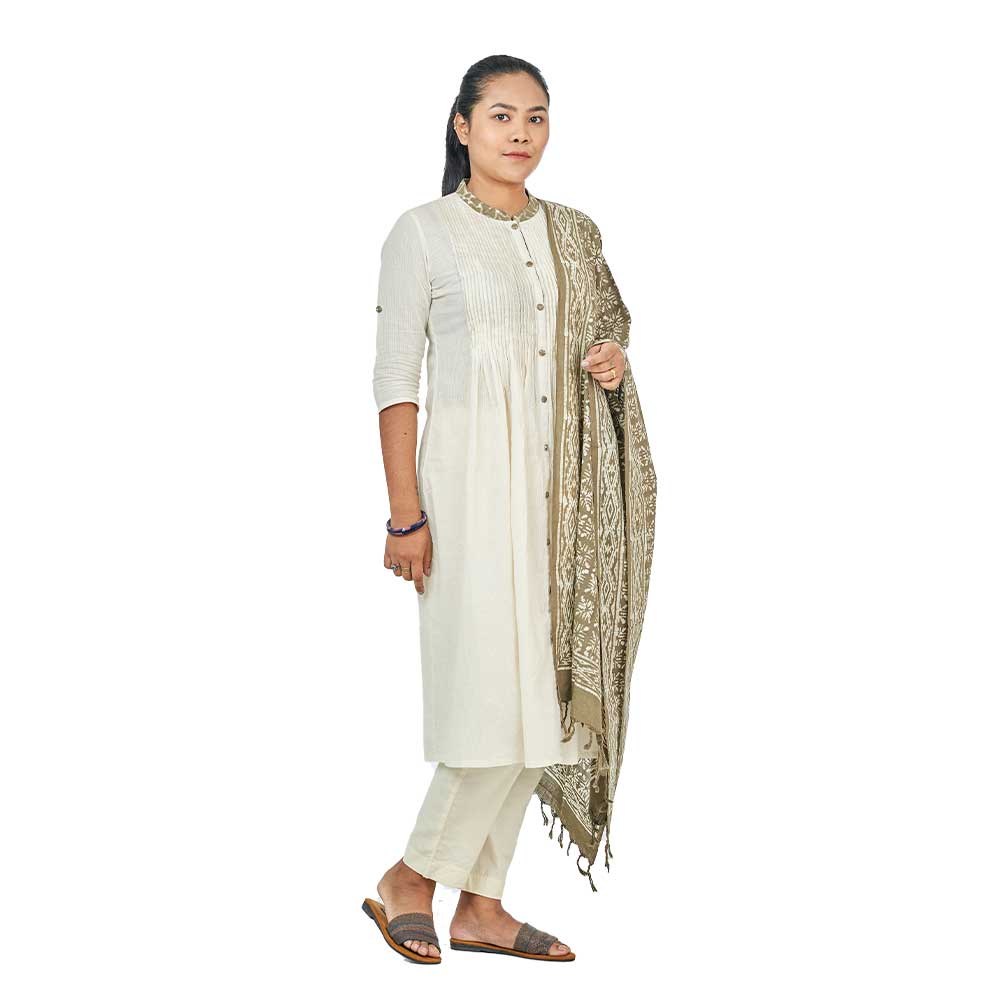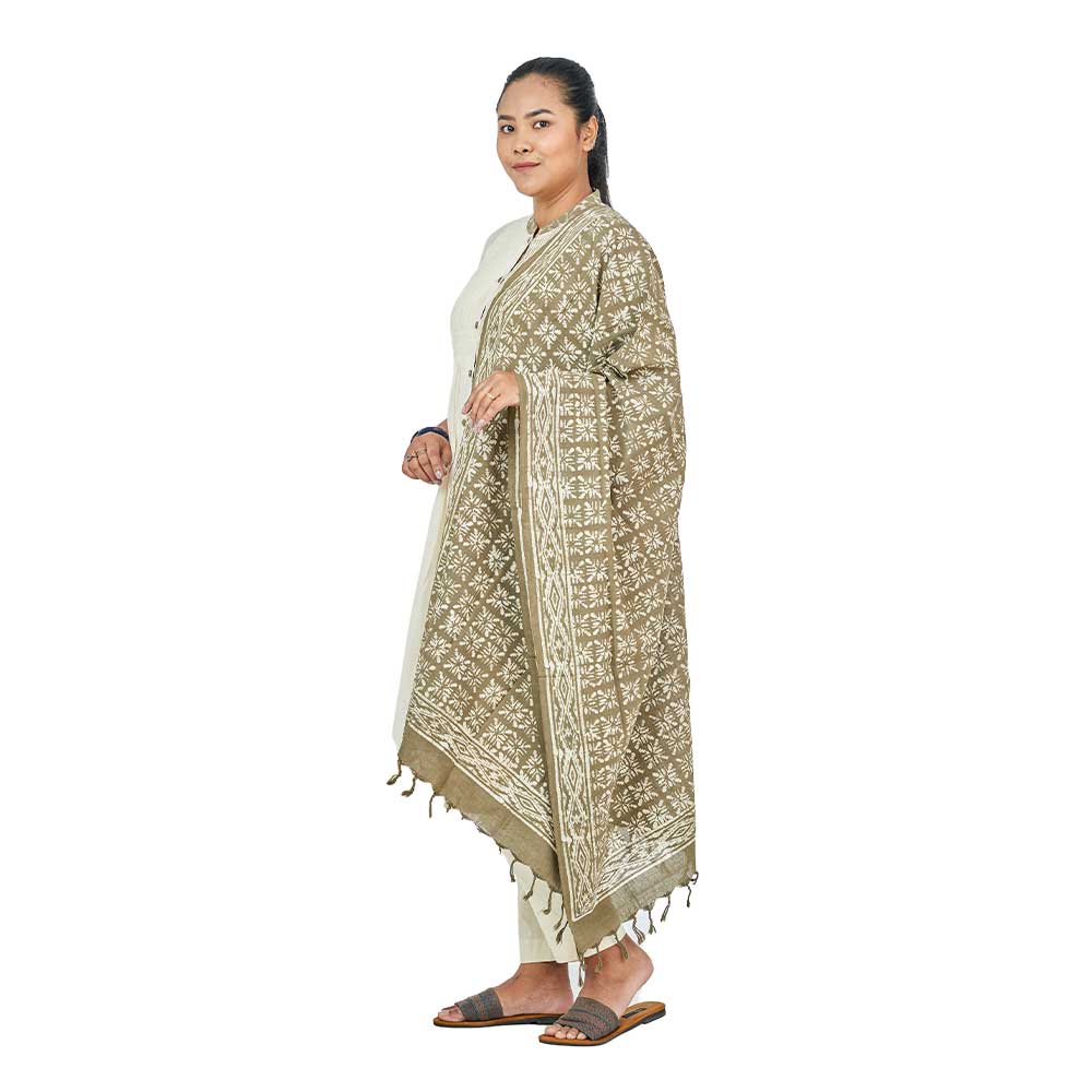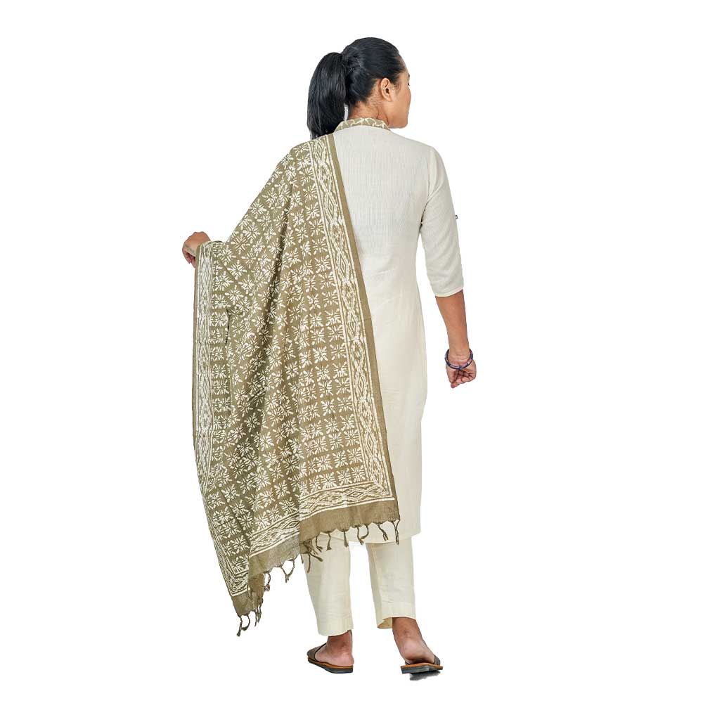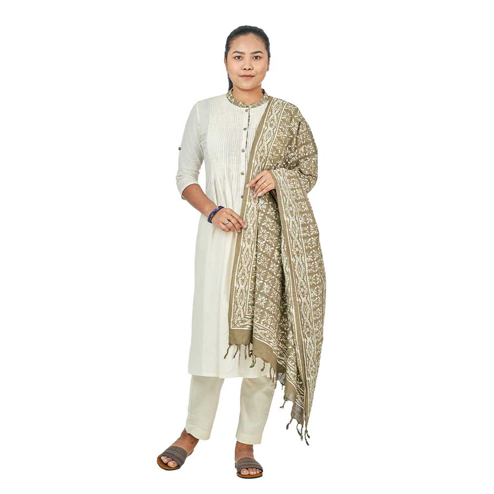 The secret natural color Madder and kashmi is red and black color giving an ornamented look with this block printed detail pure silk.